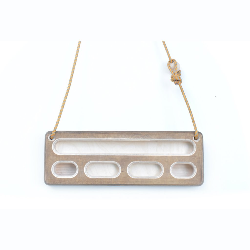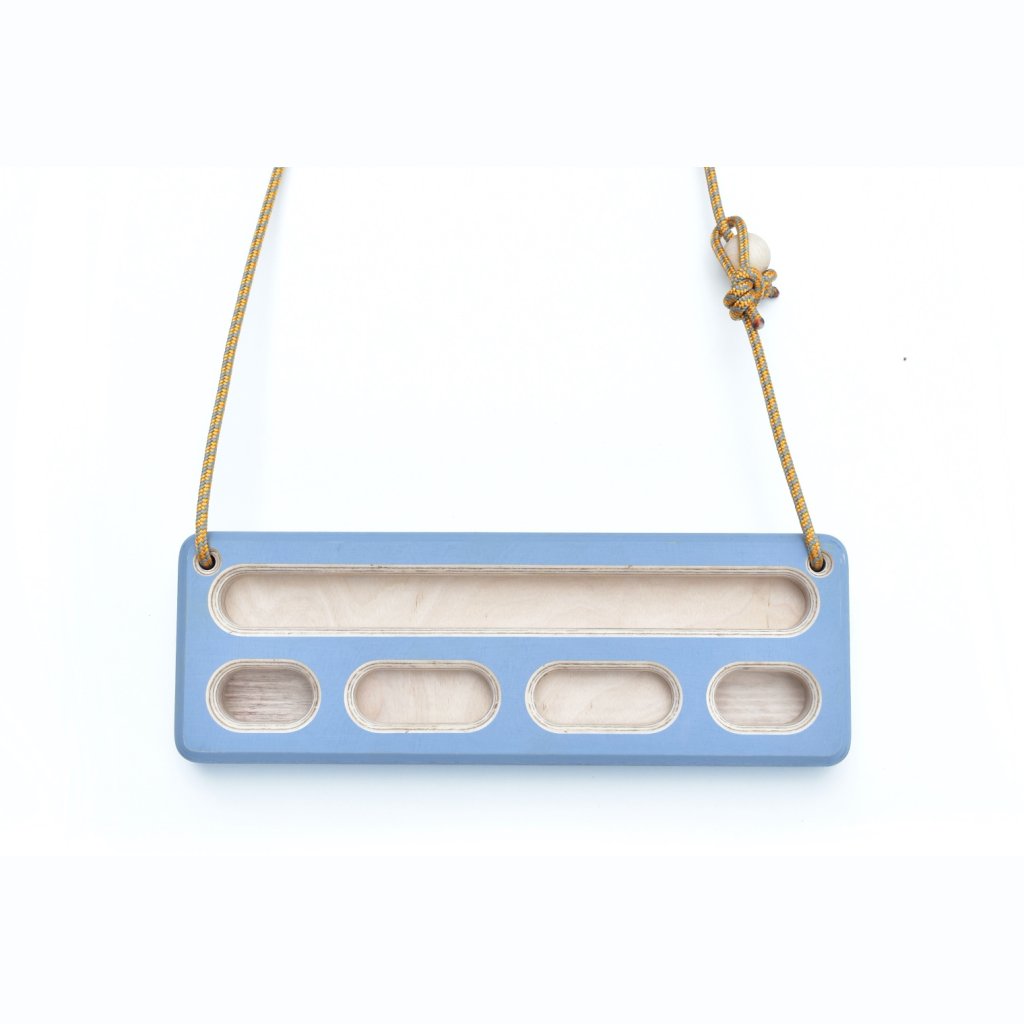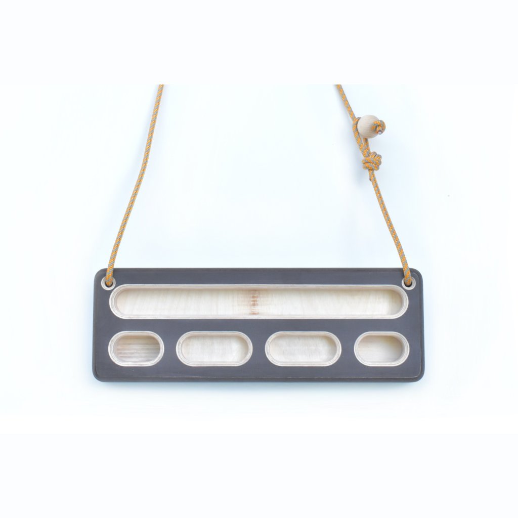 Aby bylo možné desku zavěsit opravdu kamkoliv, vybavili jsme ji naším osvědčeným systémem Easy-Ball, který umožňuje lanko hangboardu snadno rozpojit a opět spojit během pouhých několika sekund. Komfort tréninku je zvýšen i tím, že hangboard je ve výchozí pozici lehce naklopen, díky čemuž z něj prsty po zatížení nesjíždějí.