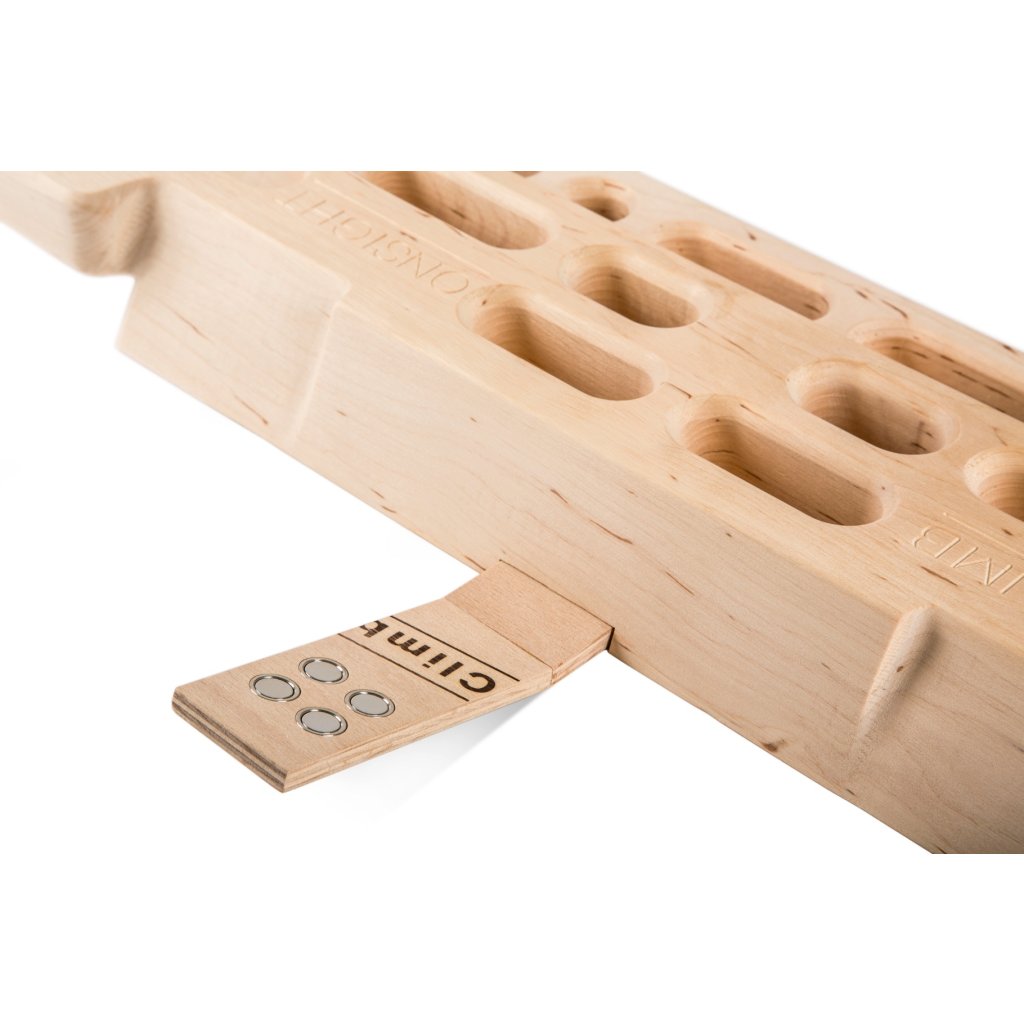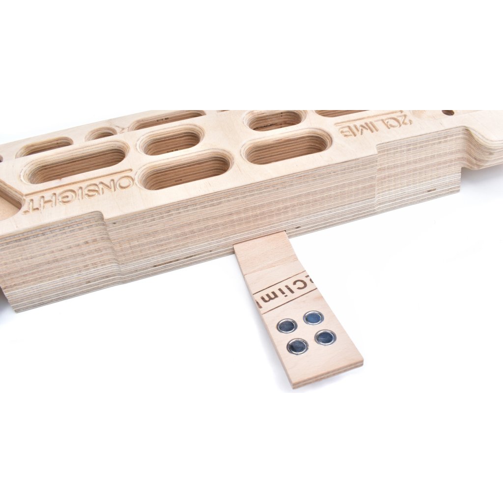 Ale to hlavní co z Onsightu dělá opravdu unikátní balknu je, že se jí můžeš snadno přizpůsobit k obrazu svému. V 2Climb jsme totiž vyvinuli originální upínací mechanismus, který umožňuje k desce snadno připevnit jeden další, libovolný pár chytů. Deska je sice v základu bez těchto chytů, ty je ale možné kdykoliv přiobjednat.